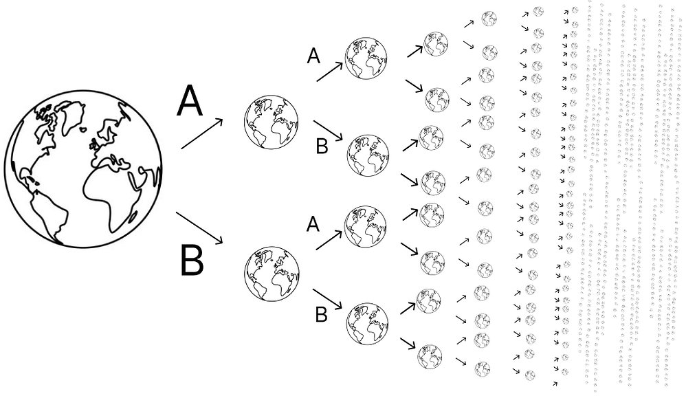 We choose the branch of the multiverse we want to go to through our agency. This is an incredibly useful abstraction.